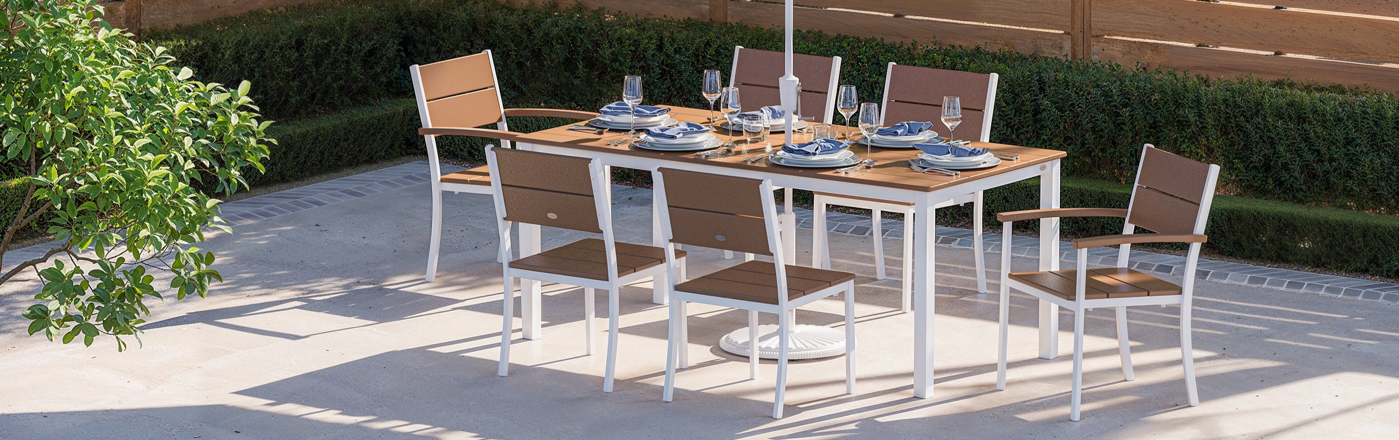 Shop Main Street: a mix of commercial-grade materials that endures everyday life outside, crafted in the USA with Genuine POLYWOOD™ lumber and powder-coated aluminum.