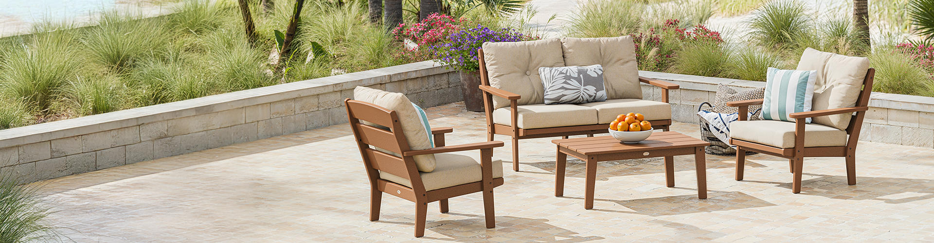We believe that outdoor furniture is an extension of your home—it's meant to be loved and lived with for years. POLYWOOD’s innovative, sustainably made lumber offers durability and longevity that wood and other plastics simply cannot, and our quick-dry cushions’ performance fabric resists rain, salt, sun, mold, and mildew. All of our deep seating collections and cushions are proudly made in the USA (with free delivery).