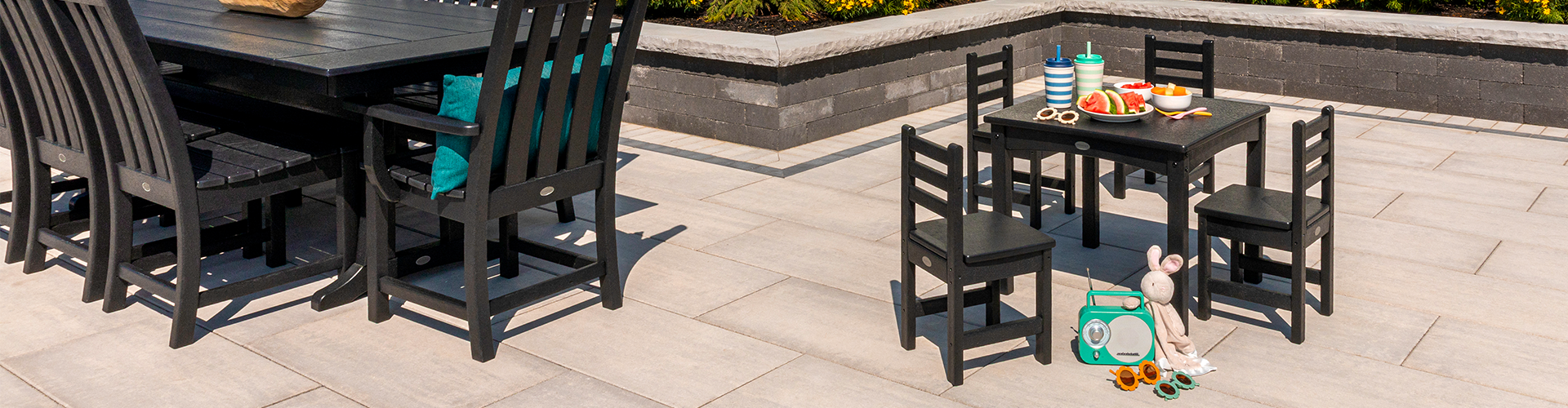 The perfect patio furniture to play, snack, imagine, and create. Our dining tables and chairs are available in two different sizes to accommodate both big and little kids—there's something for everybody.