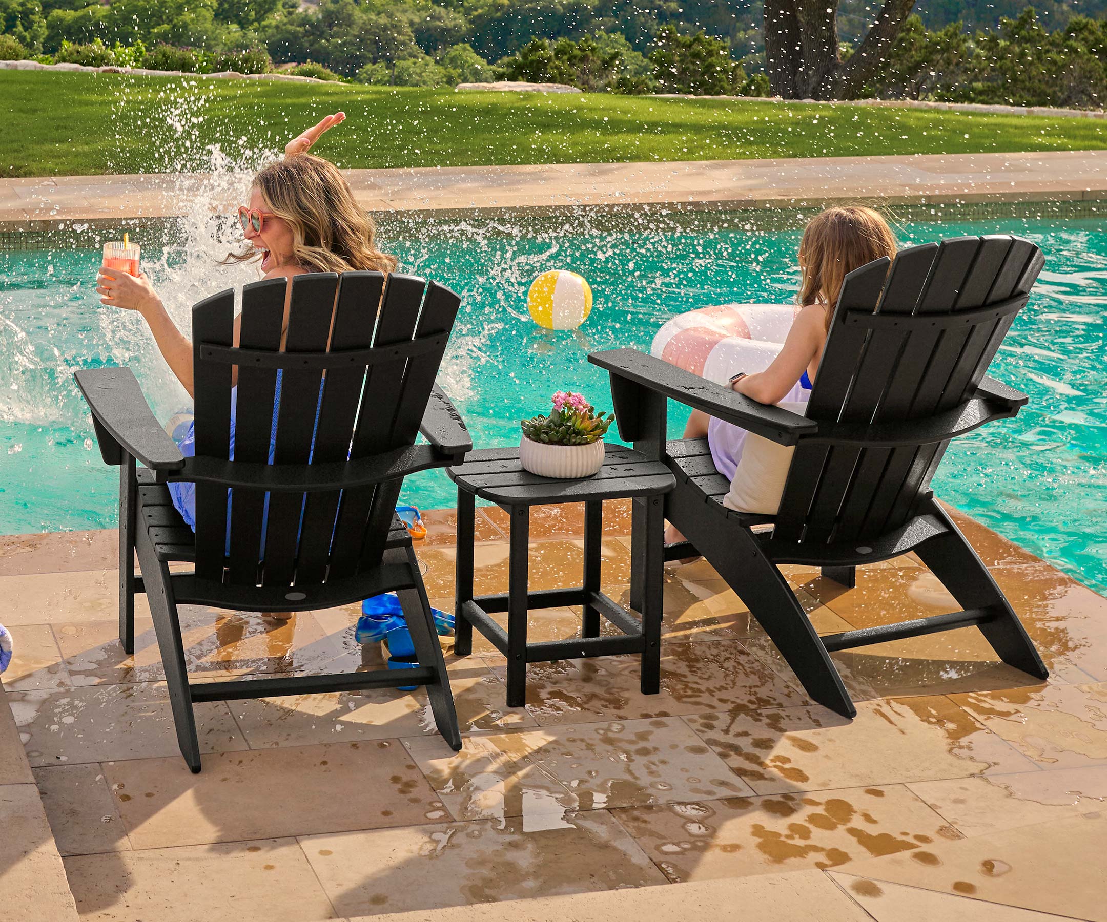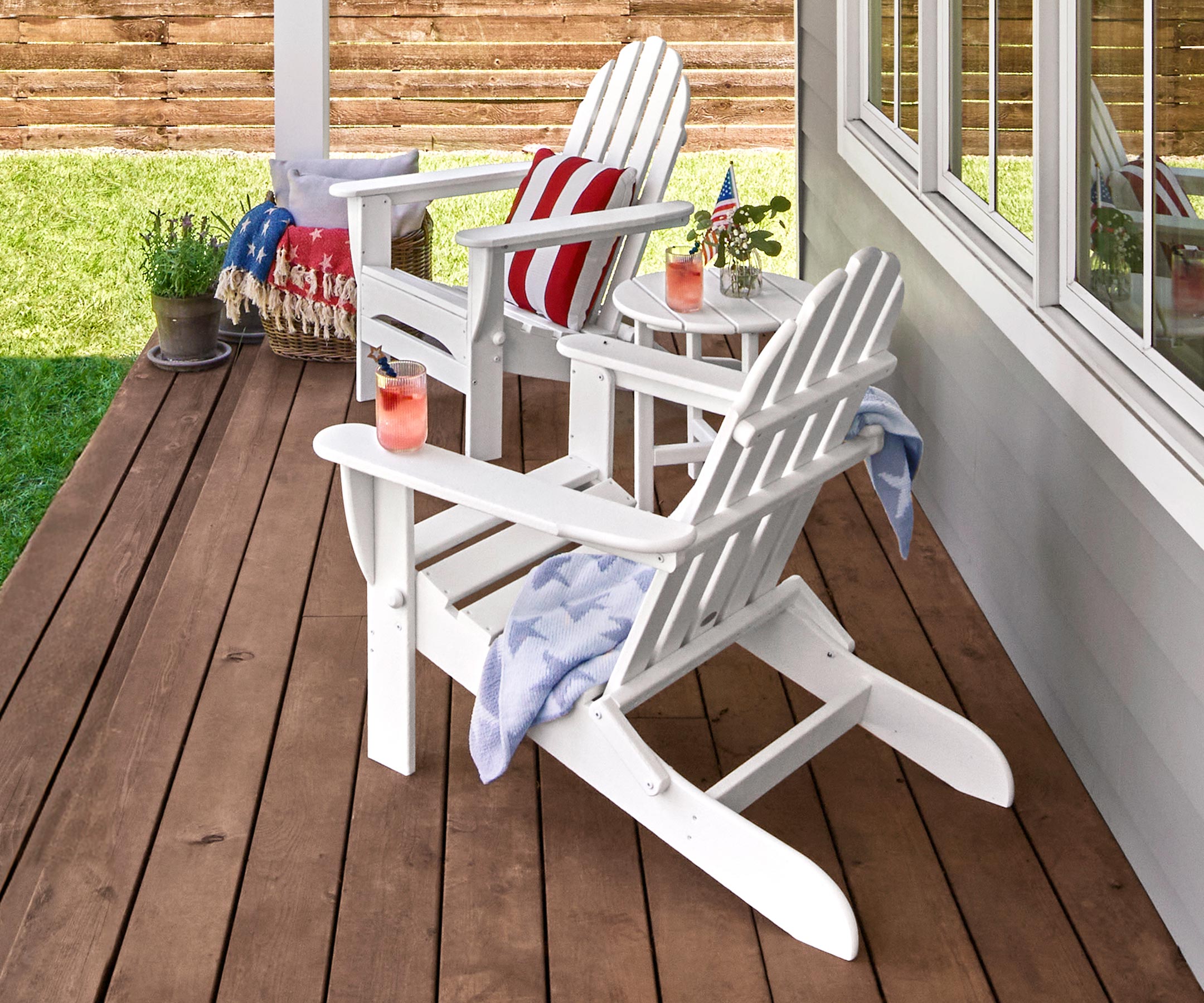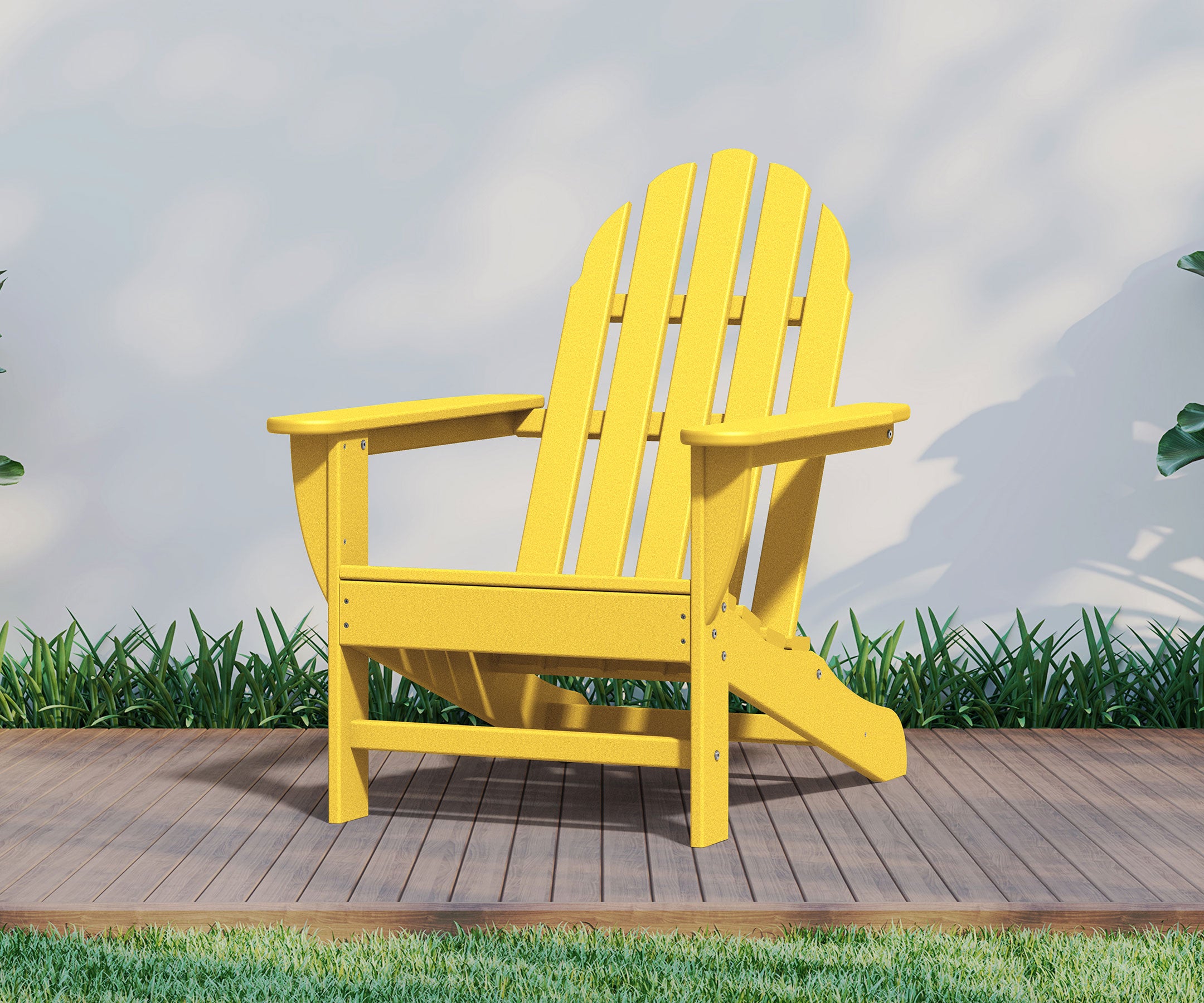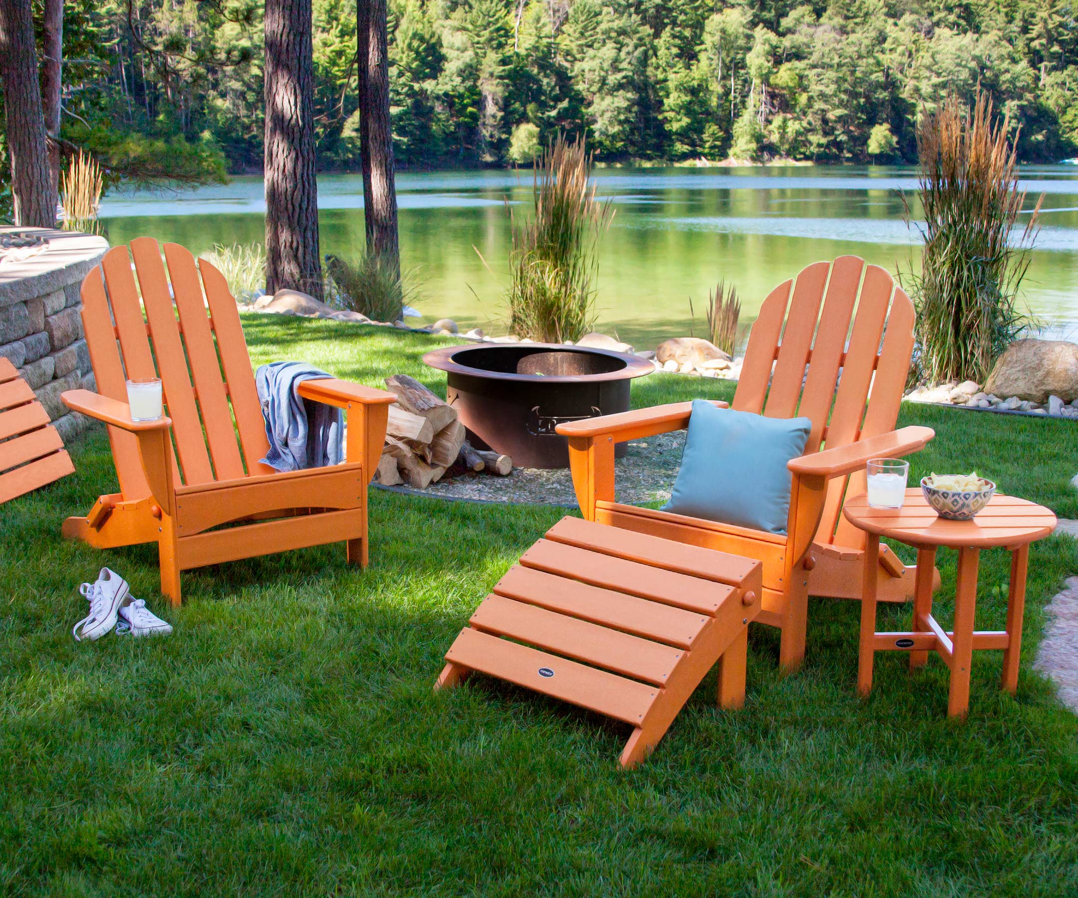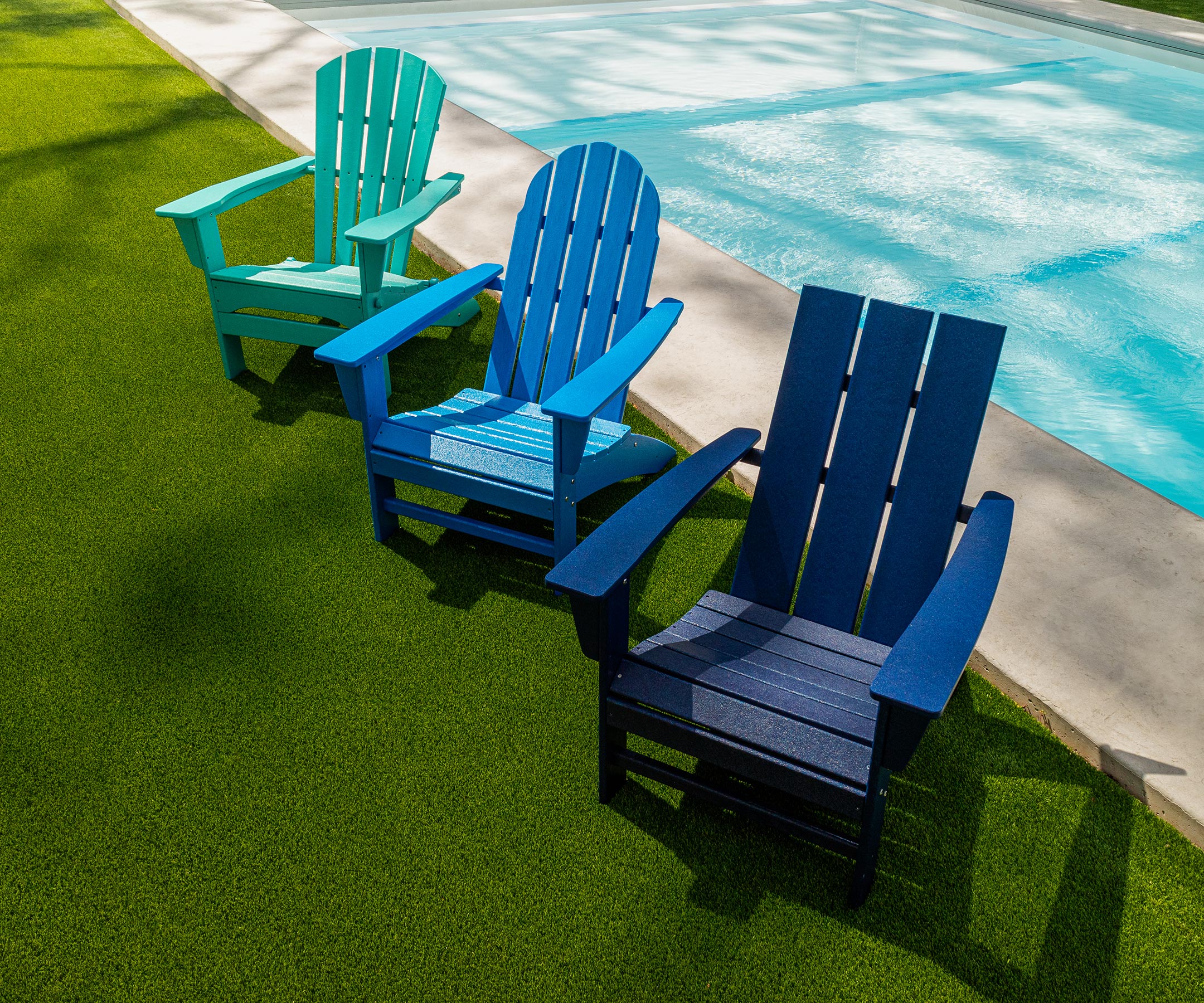 Adirondack chairs, aptly named for their origins in New York’s Adirondack Mountains, put you in a staycation state of mind. This iconic outdoor staple features a tall back, sloping seat, and extra-wide armrests for a relaxed, restful recline. At POLYWOOD, our colorful Adirondack chairs are beautifying the great outdoors in more ways than one. Every chair, in every shade, is built in the USA of highly durable materials that will last for generations of family gatherings.