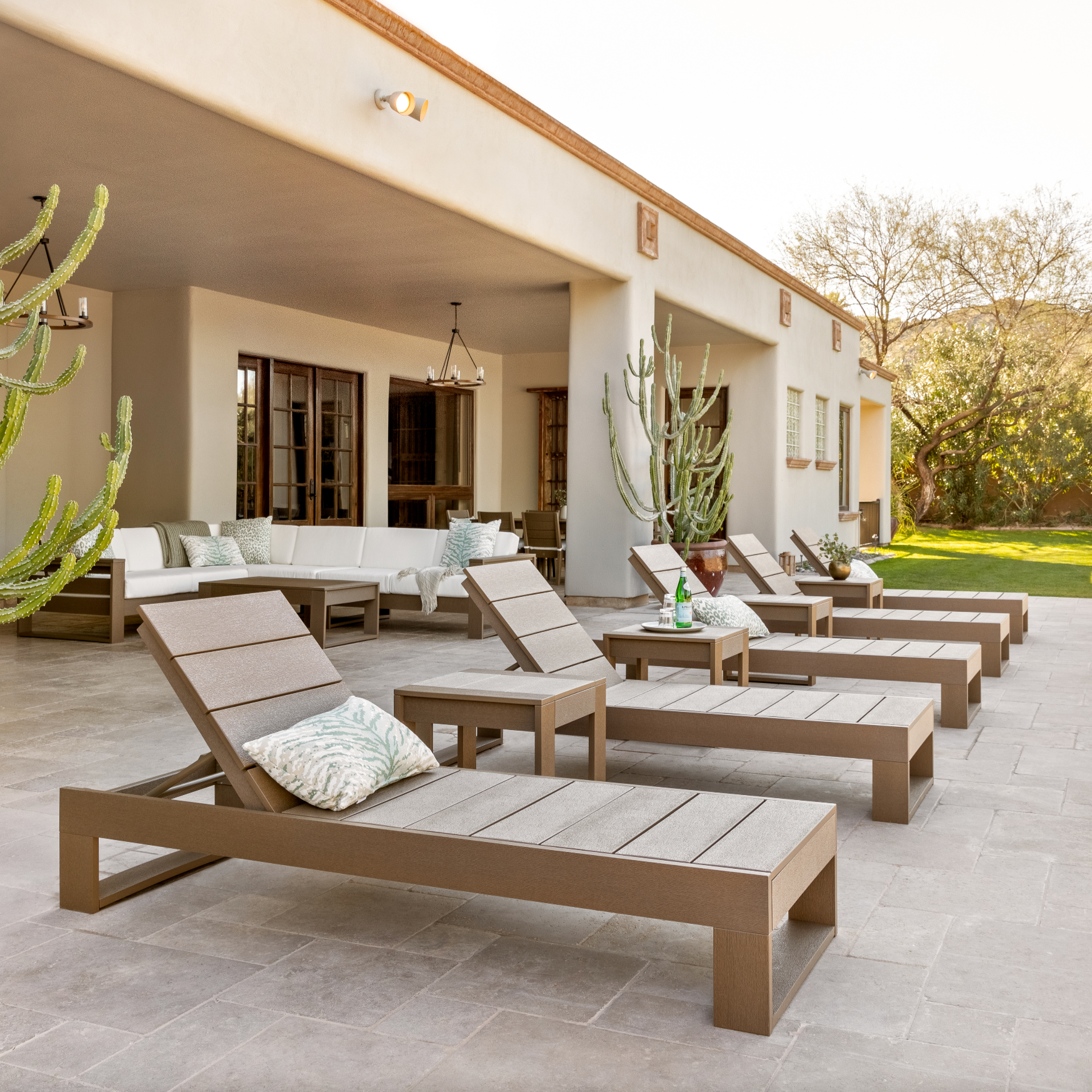 The Latitude Collection's clean, horizontal lines and sharp angles speak to bold shapes, while the spacious frames create a balanced yet striking aesthetic that makes your outdoor space feel open and inviting.