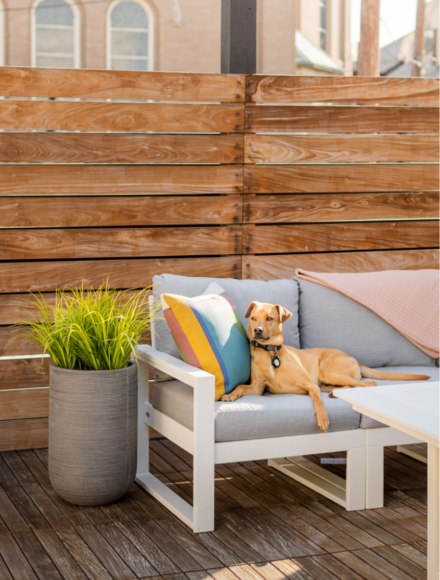 Living in an urban environment typically means limited square footage, both inside and out. Anthony’s space-saving solution was to use patio furniture that didn’t require off-season storage. After collaborating to outfit his mountainside vacation home in 2020, he enlisted our help for his newest project. Knowing our furniture thrives in any season or climate, Anthony was excited to get creative.