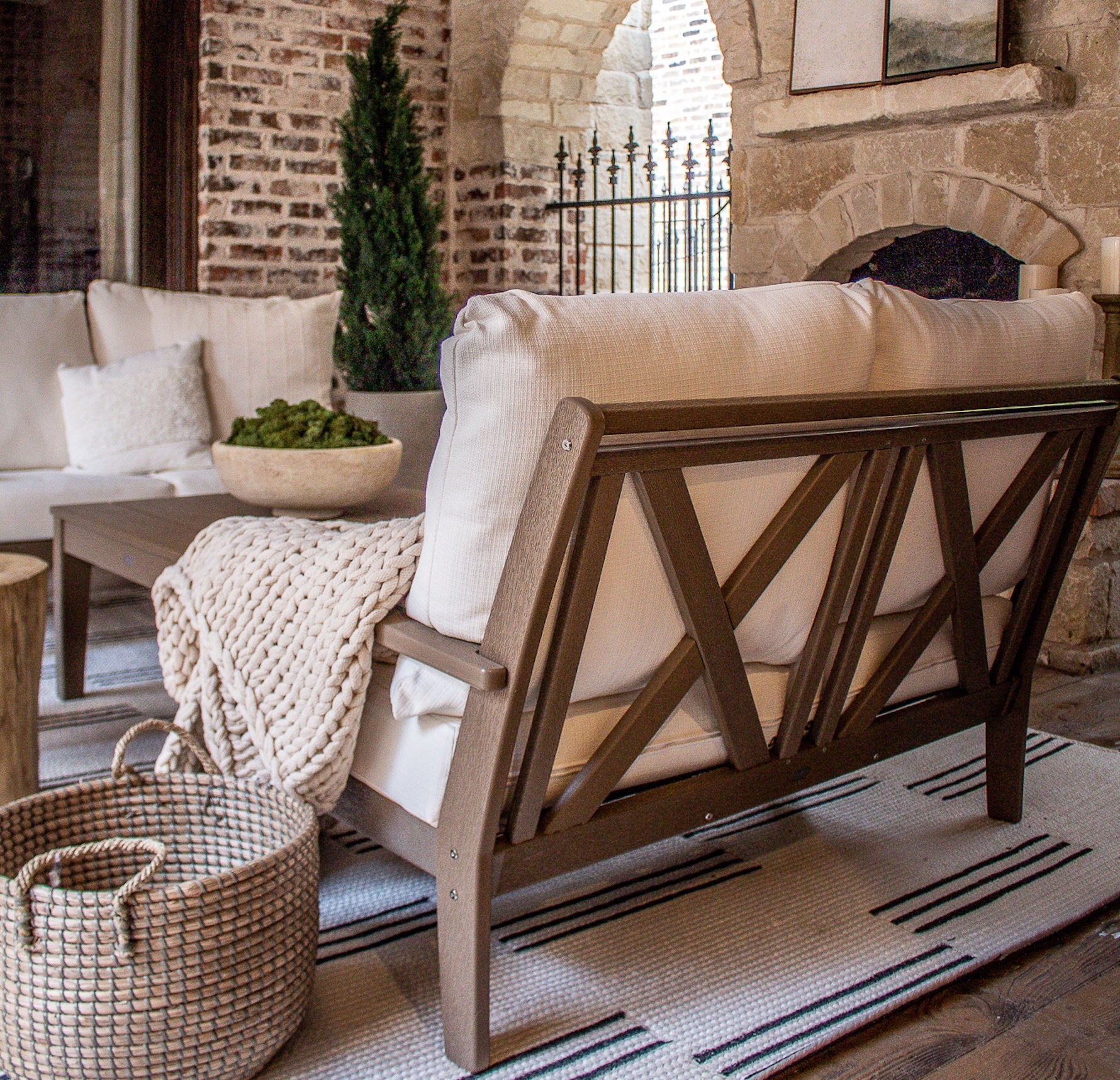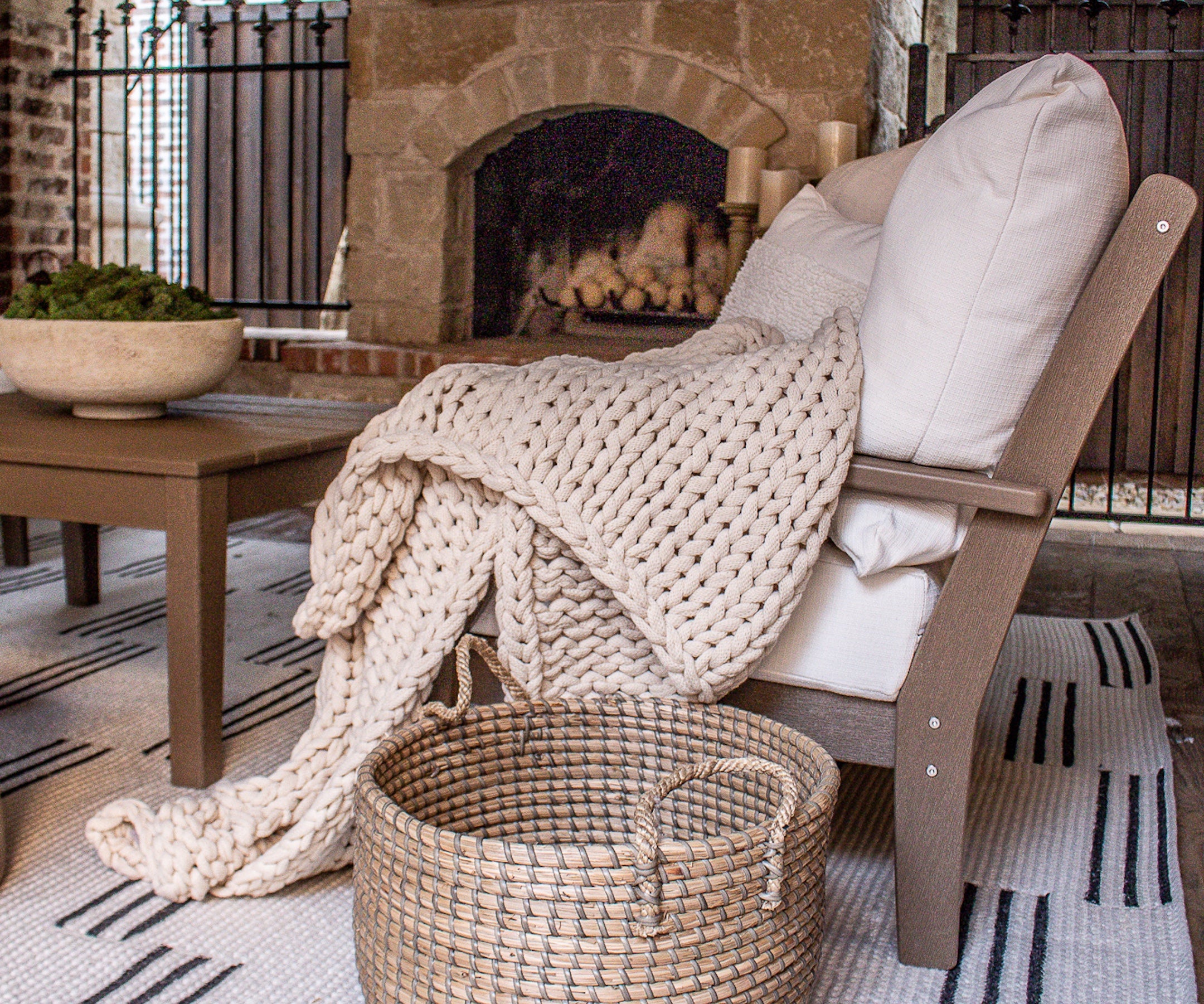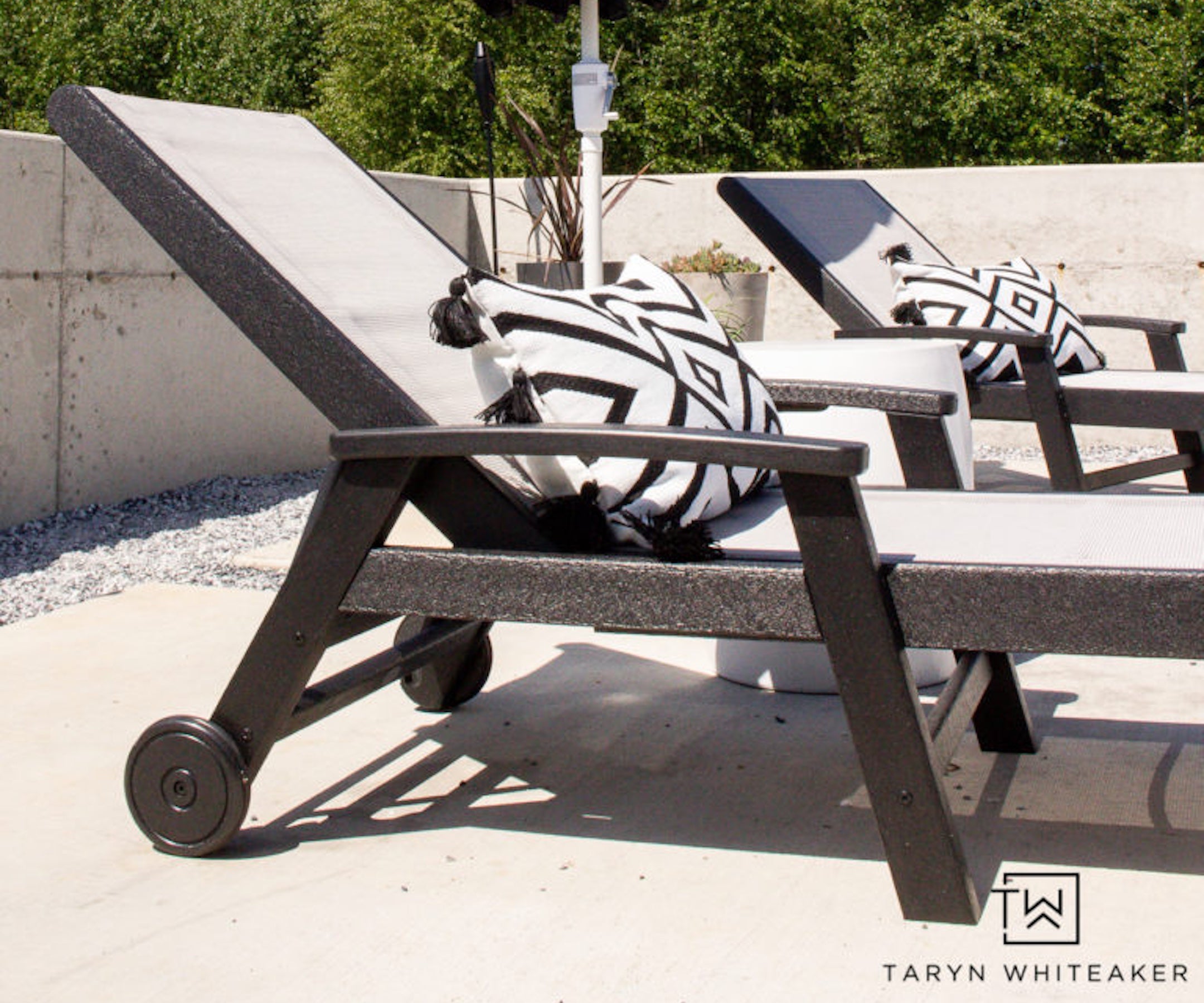 Keeping her outdoor layout in mind—as well as the Texas heat, humidity, and intense sun—Taryn used our Vineyard, Braxton, and Club Collections to bring her ideas to life. She took a warmer approach with the color scheme, blending brown hues into her beloved black-and-white palette. The neutral tones complemented the classic style while adding fresh modern vibes.