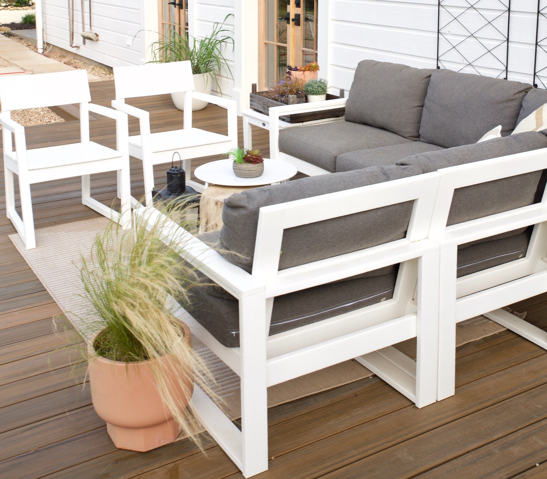 Allison chose comfortable outdoor furniture that brought modern vibes to the rustic landscape.