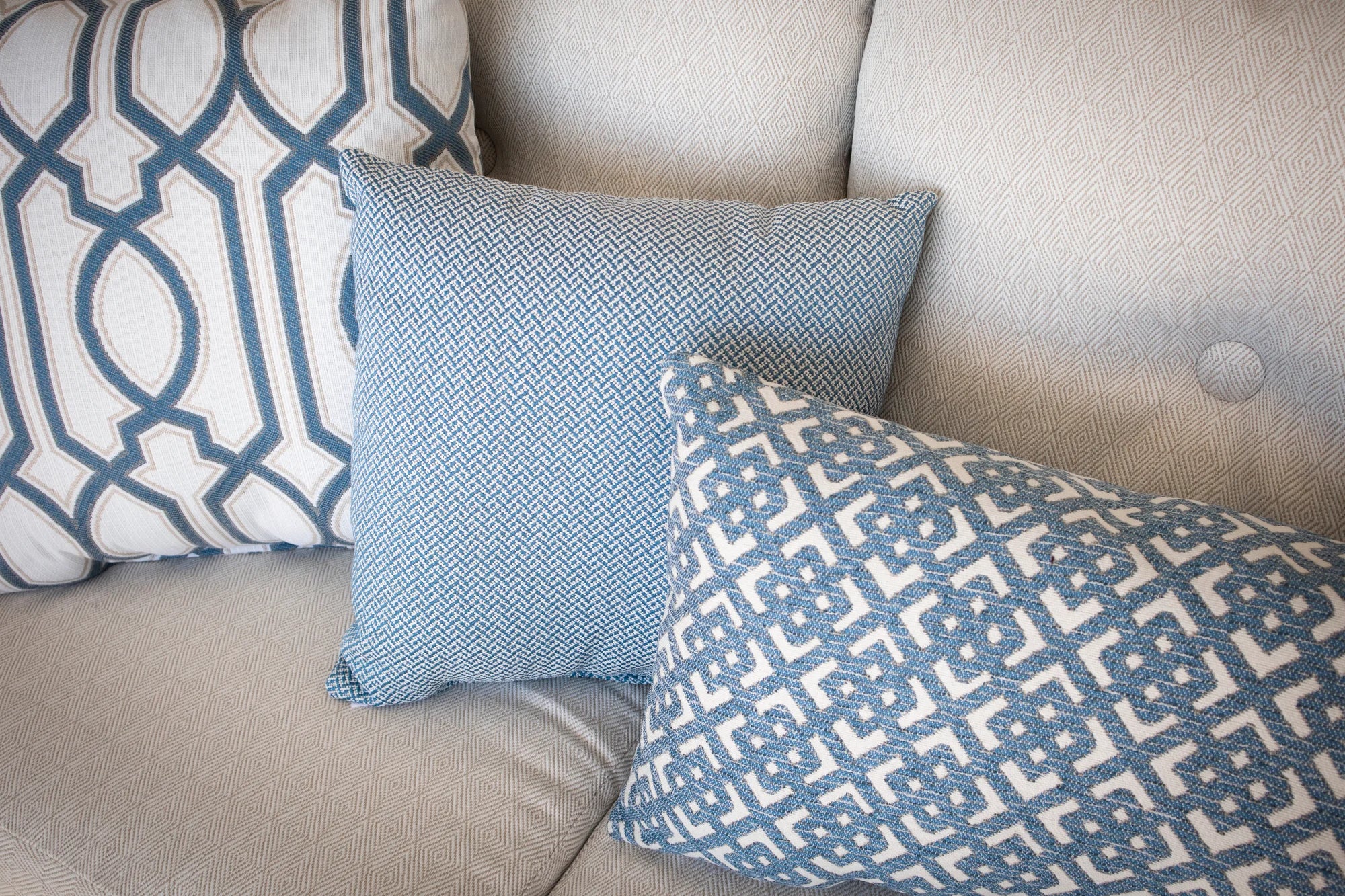 Just like indoor fabrics, outdoor performance fabrics are available in a variety of textures and colors. What makes outdoor performance fabrics different is that they have added protection against fading, accidental spills, and the occasional rainstorm. While you may choose a more neutral fabric color for your outdoor sofa cushions, we recommend letting your personality shine through a few patterned pillows paired with cheerful coordinating solids.