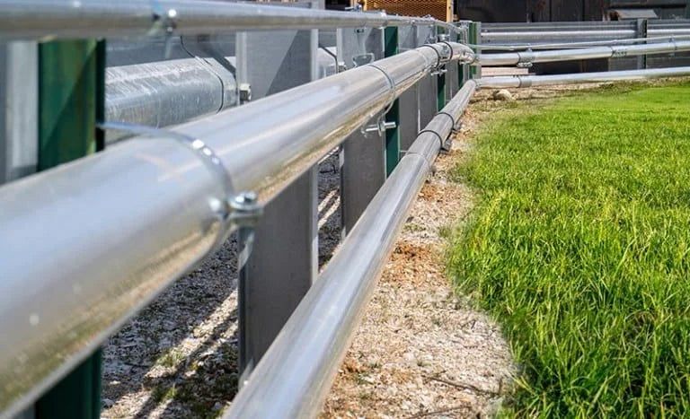 Tubing that runs from the Recycling Building over to the silos outside of the Extrusion Department.
