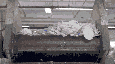 Next, the shredded flakes are pre-washed and any heavy materials that might have gotten mixed in (glass, rocks, etc.) are removed.