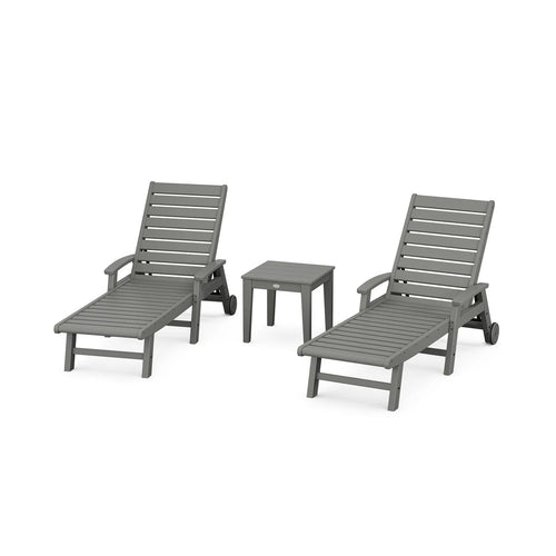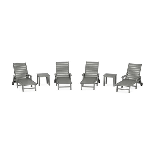 The ultimate poolside setup for four with comfy chaises and end tables for serving and storage
